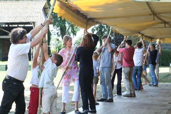 Et lorsque chacun a terminé sa journée, épuisé mais heureux, nul ne peut imaginer quitter les lieux, car on veut prolonger ces moments magiques passés ensemble, et on se retrouve alors pour une veillée où l’on va danser, chanter, rire, parfois jusque tard dans la nuit, cela durant 5 jours de suite, jusqu’à l’arrivée du public.